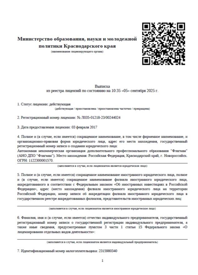 лицензии на осуществление образовательной деятельности (выписка из реестра лицензий на осуществление образовательной деятельности);